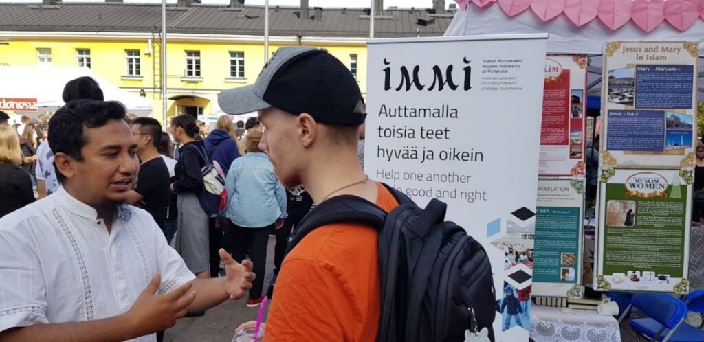 Selain berjualan, kita juga mencetak brosur-brosur kecil tentang islam dan juga memasang poster-poster tentang islam di Indonesia. Banyak masyarakat Finlandia yang mengambil brosur ini setelah mereka mengambil secangkir kopi gratis atau membeli jajanan pasar kita. Beberapa dari mereka lantas menanyakan beberapa hal tentang isi dari brosur dan posternya. Di stand ini kita juga berencana untuk mengadakan program hijab try out. Dimana disini kita sediakan cermin dan hijab bagi para perempuan yang ingin mencoba mengenakan hijab. Namun program ini tidak berjalan karena stand nya sudah penuh dengan hal lain.